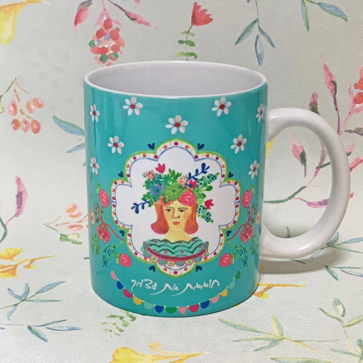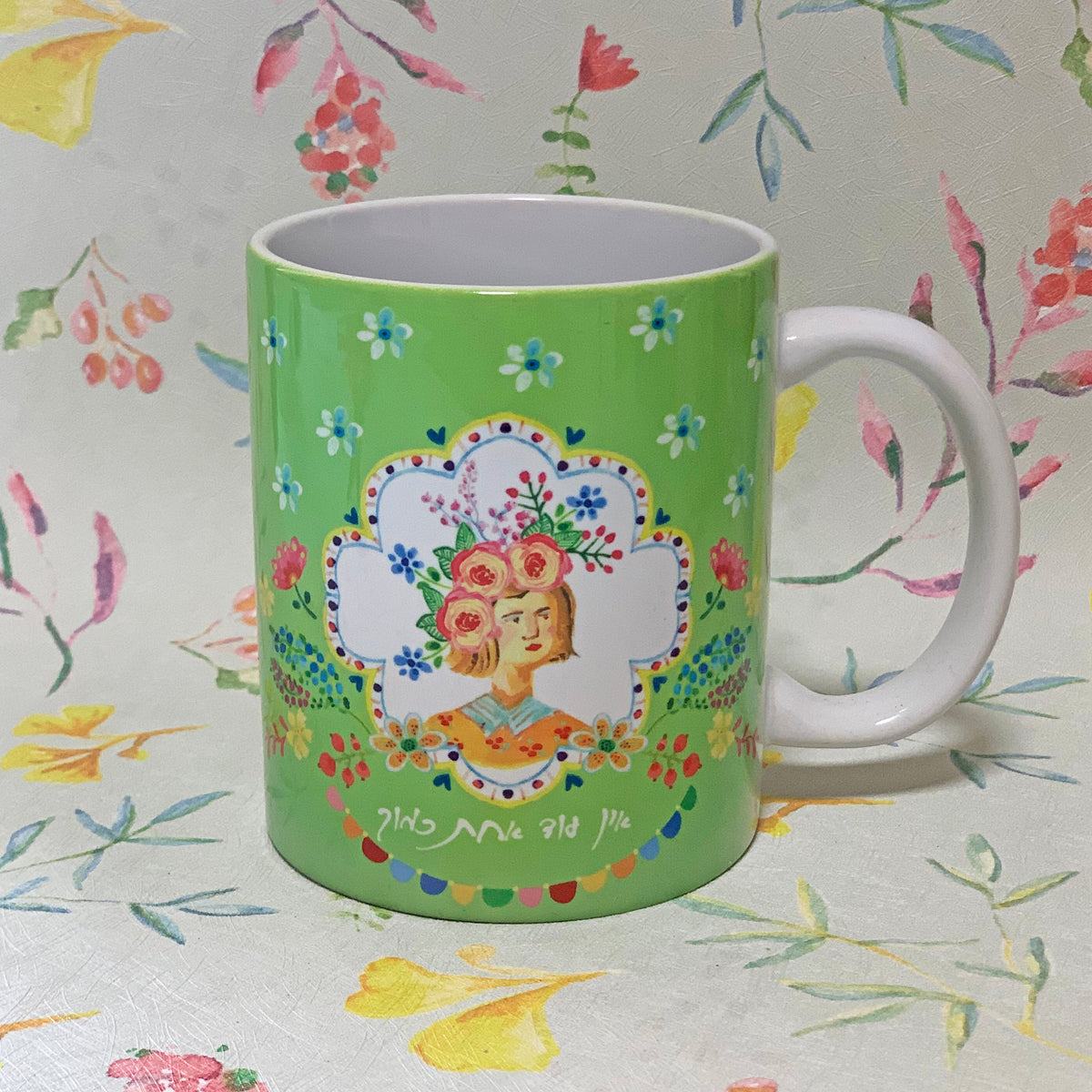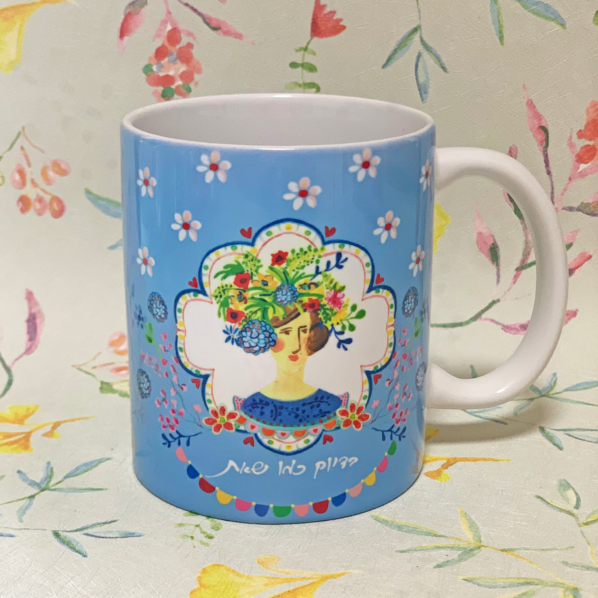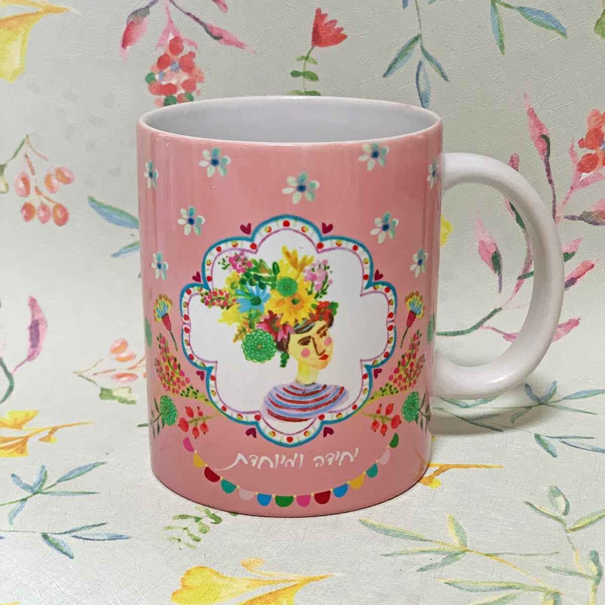 .הדפס מקסים של דמויות נשיות, פרחים וכיתוב אישי לכל ספל