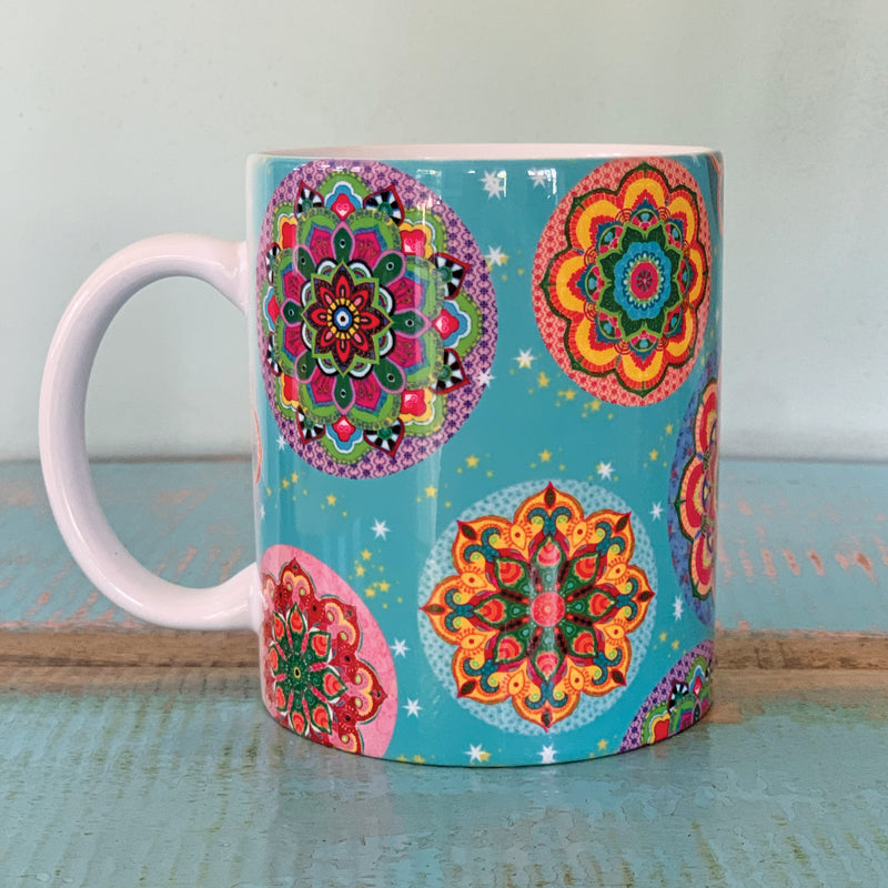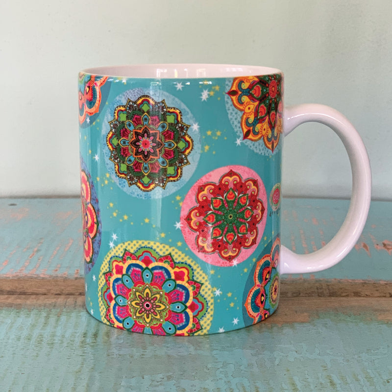 ספל מודפס- מנדלות רקע טורקיז