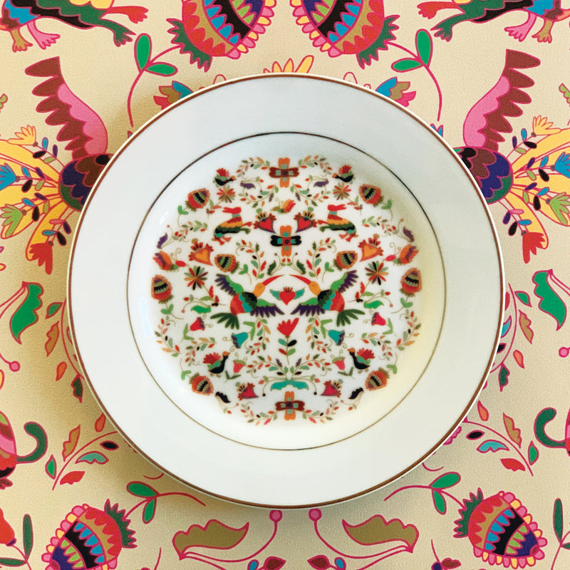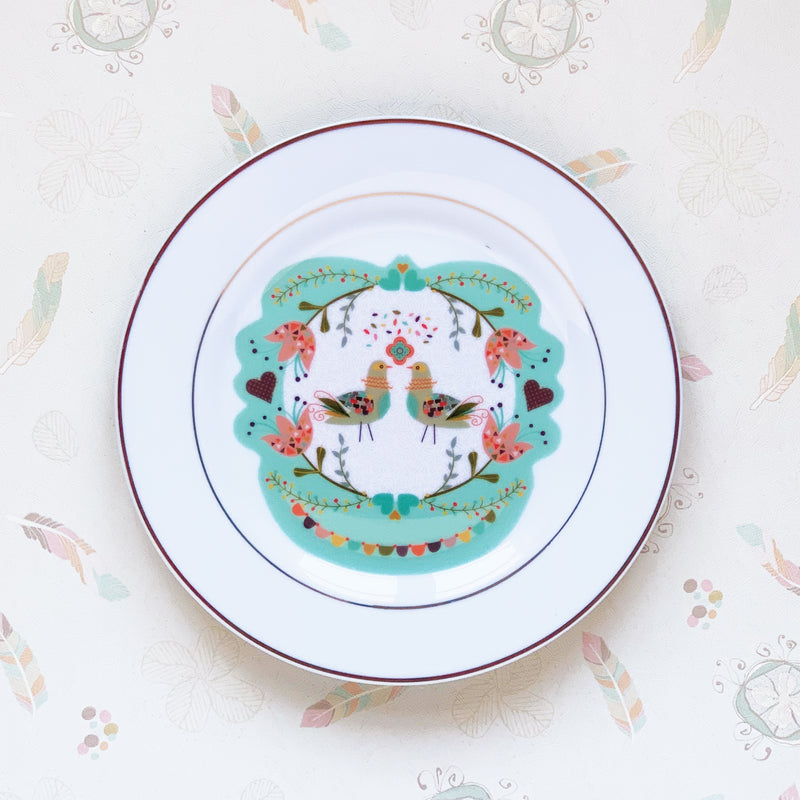 צלחת קרמיקה מודפסת- ציפורים סקנדינביות אקווה