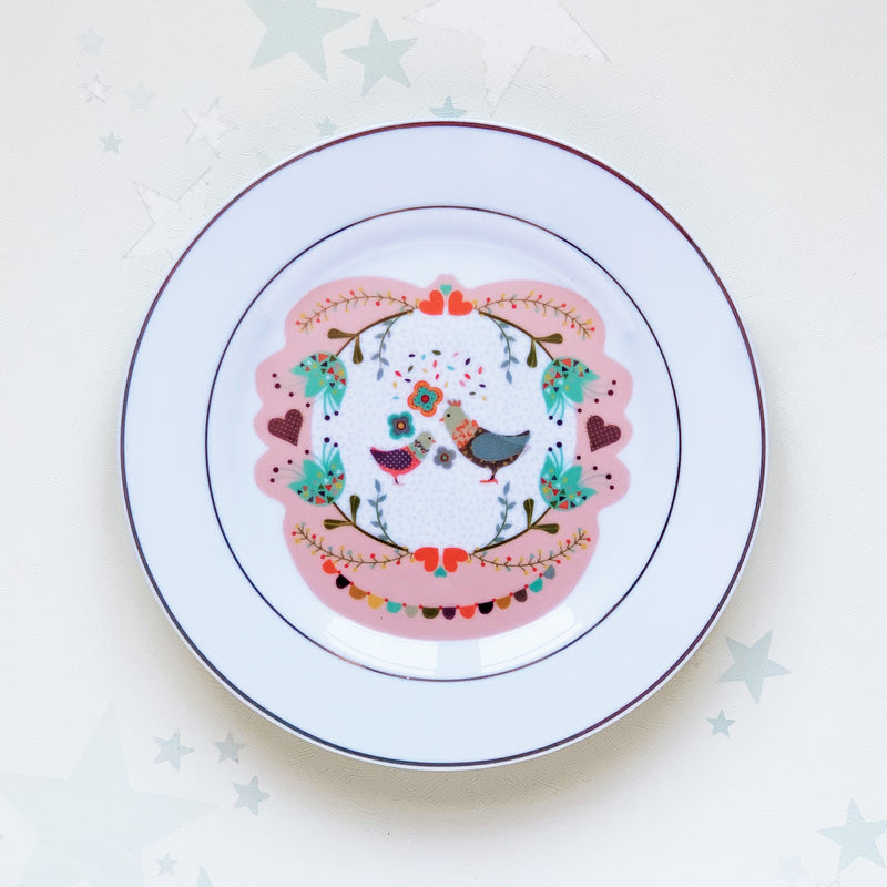 צלחת קרמיקה מודפסת- ציפורים סקנדינביות ורוד
