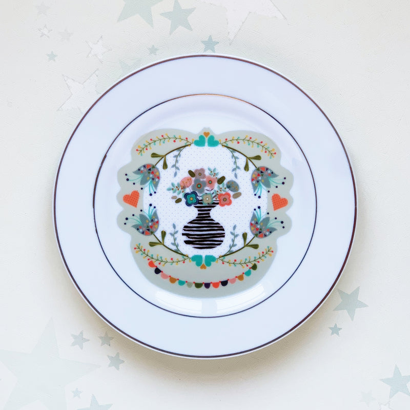 צלחת קרמיקה מודפסת- ציפורים סקנדינביות כד פרחים