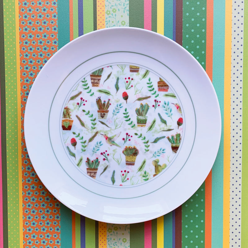 צלחת קרמיקה מודפסת- עציצים בגינה