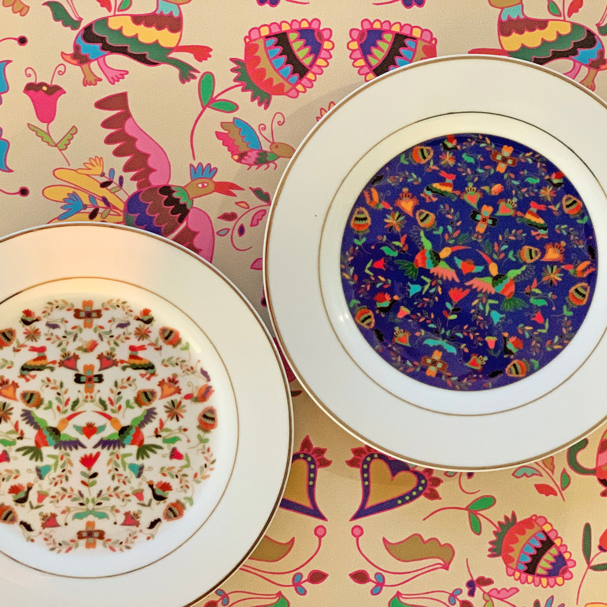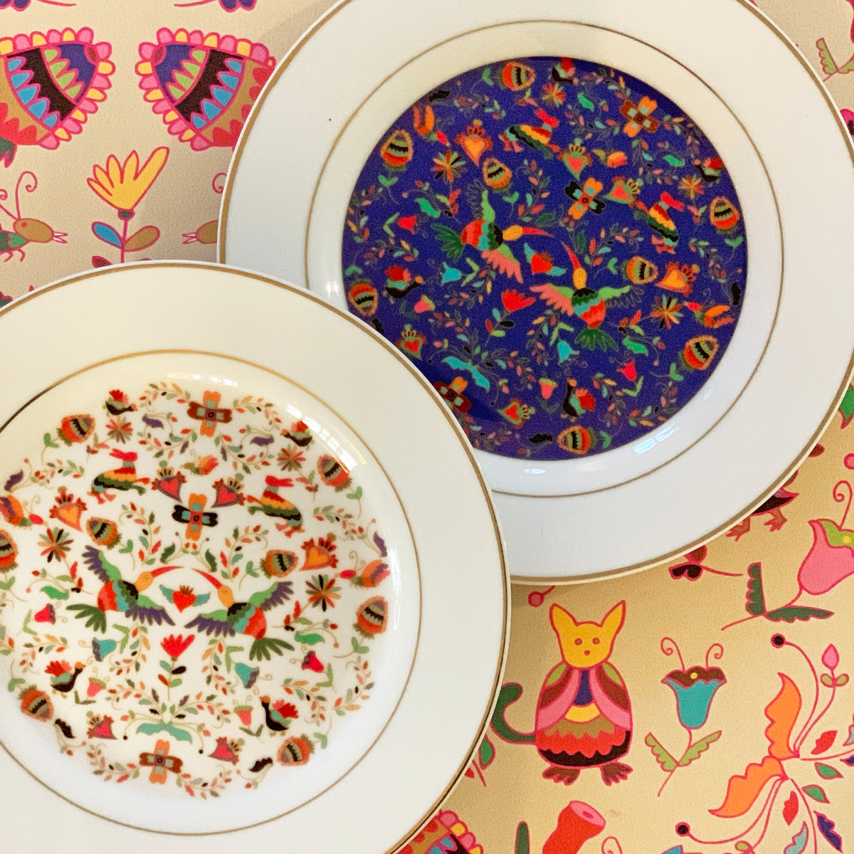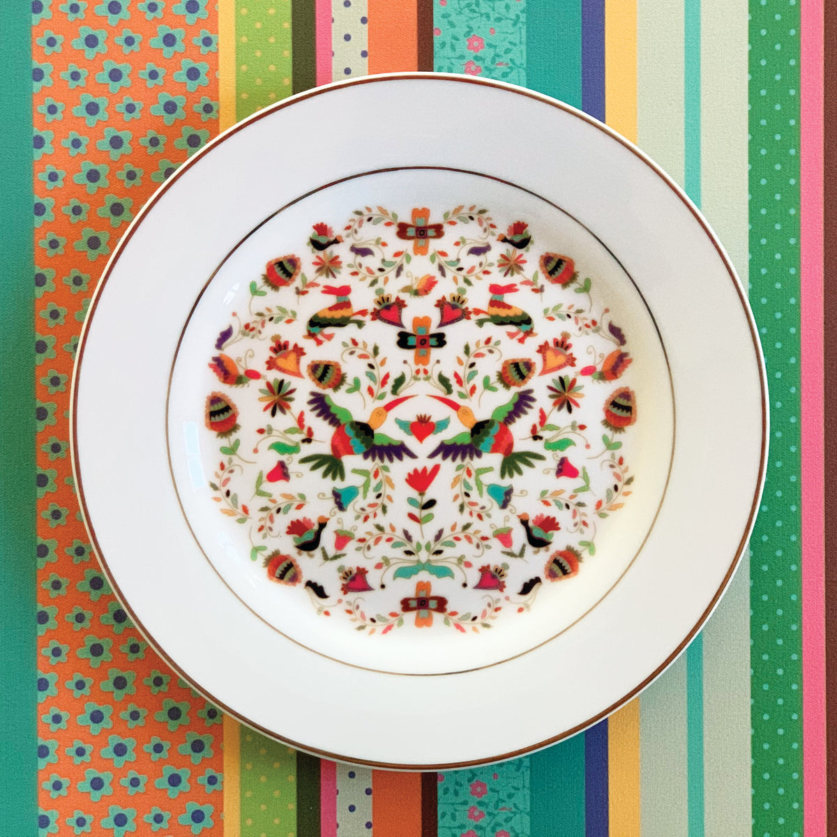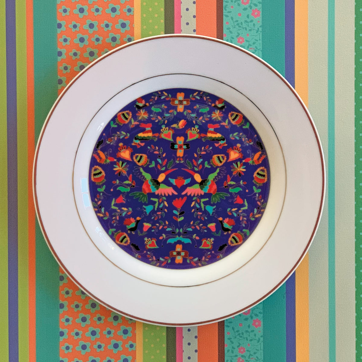 צלחת בסגנון מקסיקני עם איורים צבעוניים