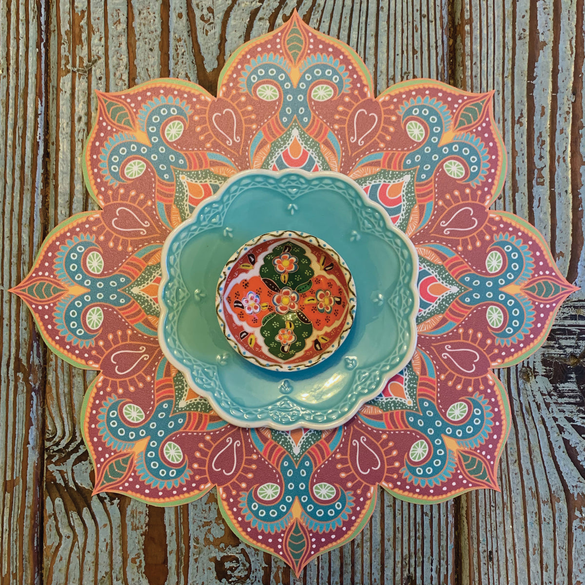 סט פלייסמטים מנדלות צבעוניות עשוי פיויסי, בחיתוך צורני