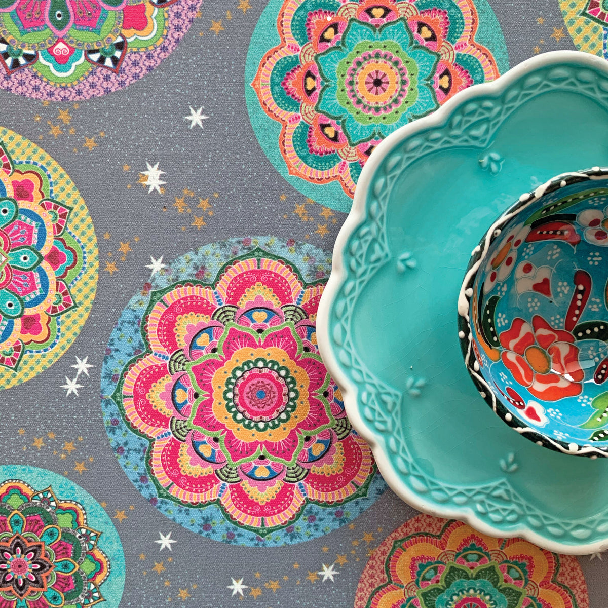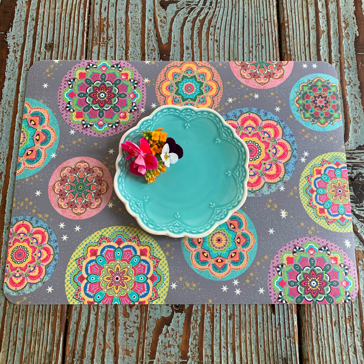 פלייסמט מלבני צבעוני ושמח עם ציורי מנדלות