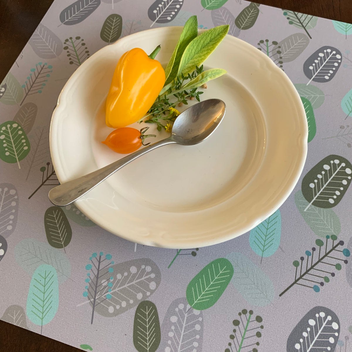 סט פלייסמטים בעיצוב סקנדינבי נקי עם איורי עלים
