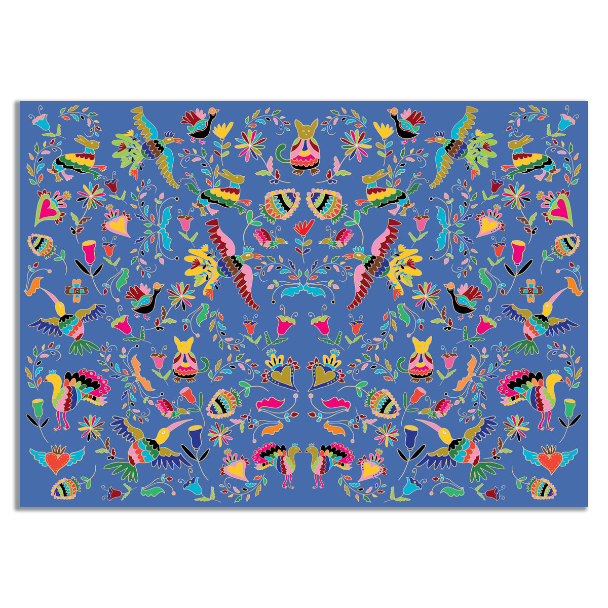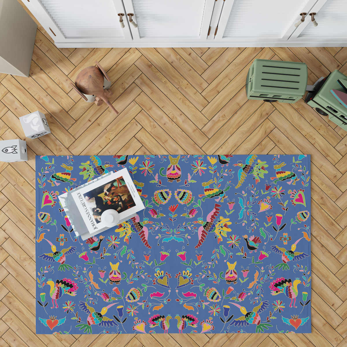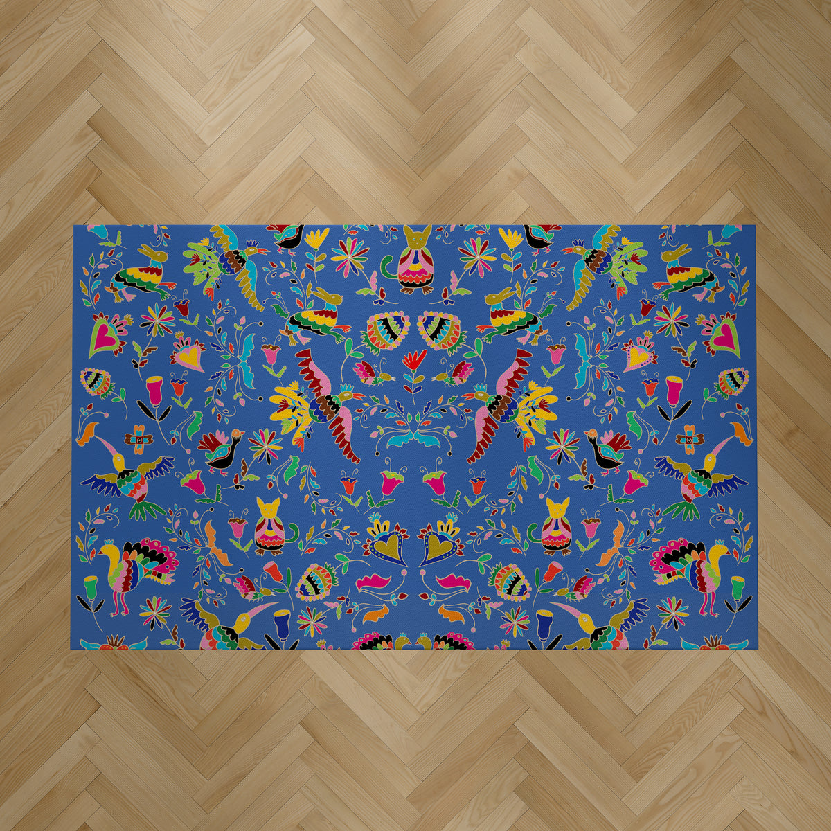 שטיח לינוליאום עם איורים בסגנון רקמות מקסיקניות, צבעוני ועשיר