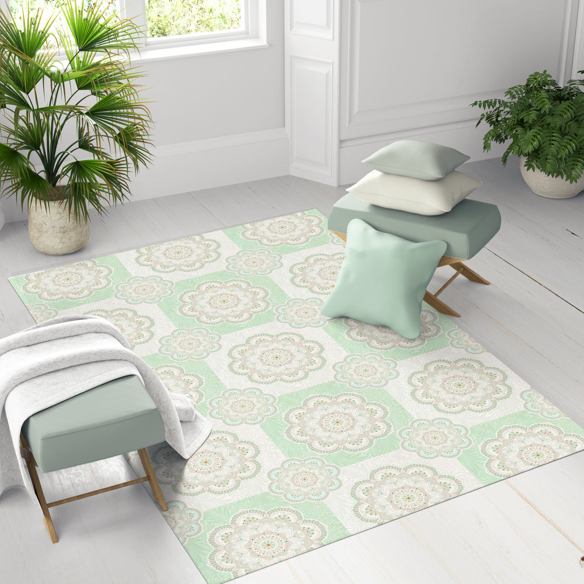 שטיח pvc - ריבועי מנדלה שמנת/ירקרק