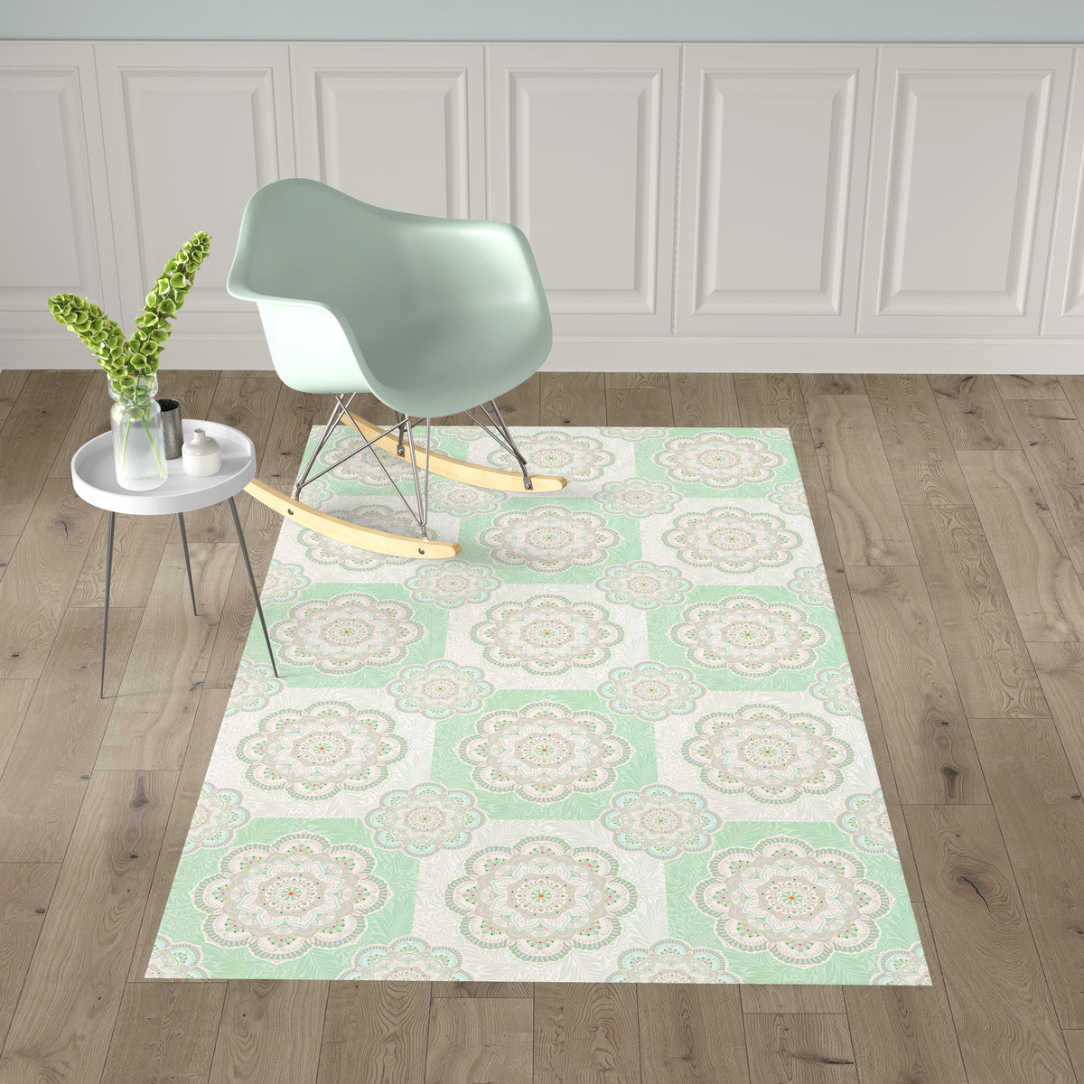 שטיח לינוליאום מקסים עם ריבועי מנדלות בגוונים בהירים ועדינים