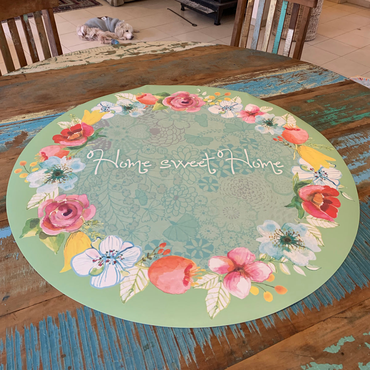 מפת שולחן pvc זר פרחים home sweet home