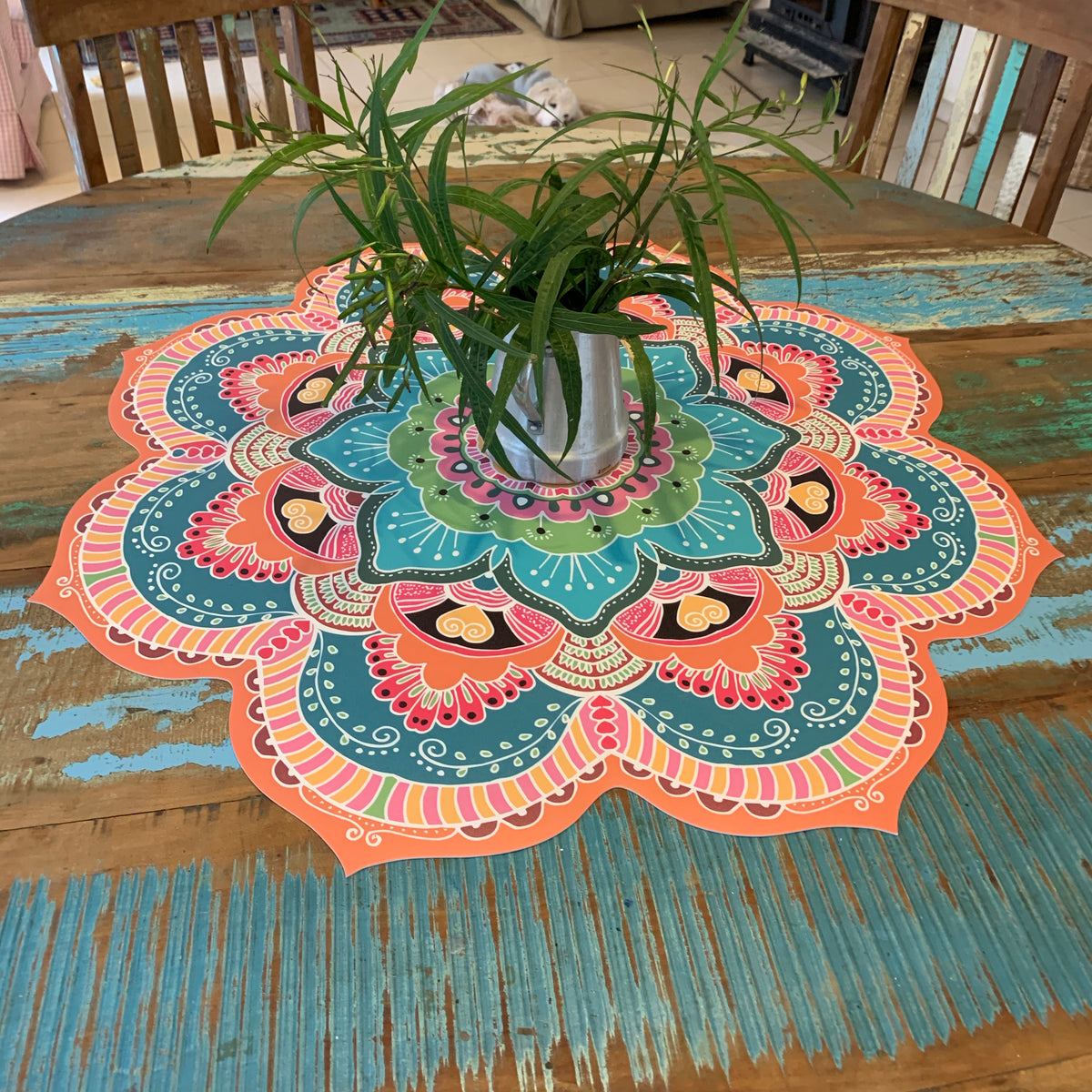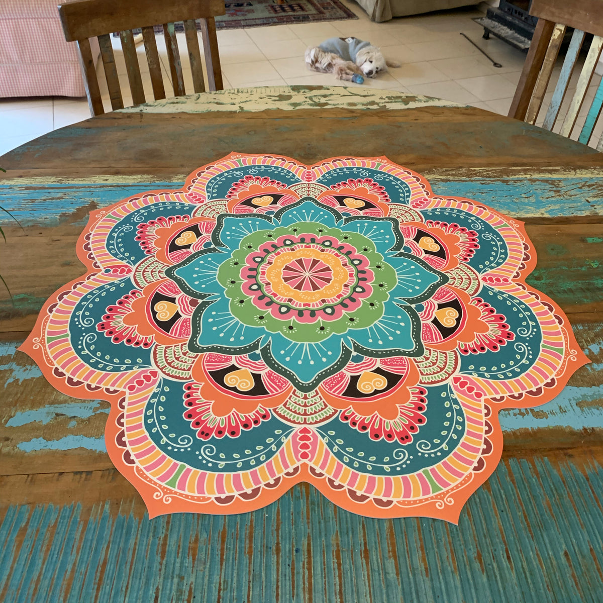 מפת פלייסמט מנדלה צבעונית ומקסימה, חתוכה צורנית