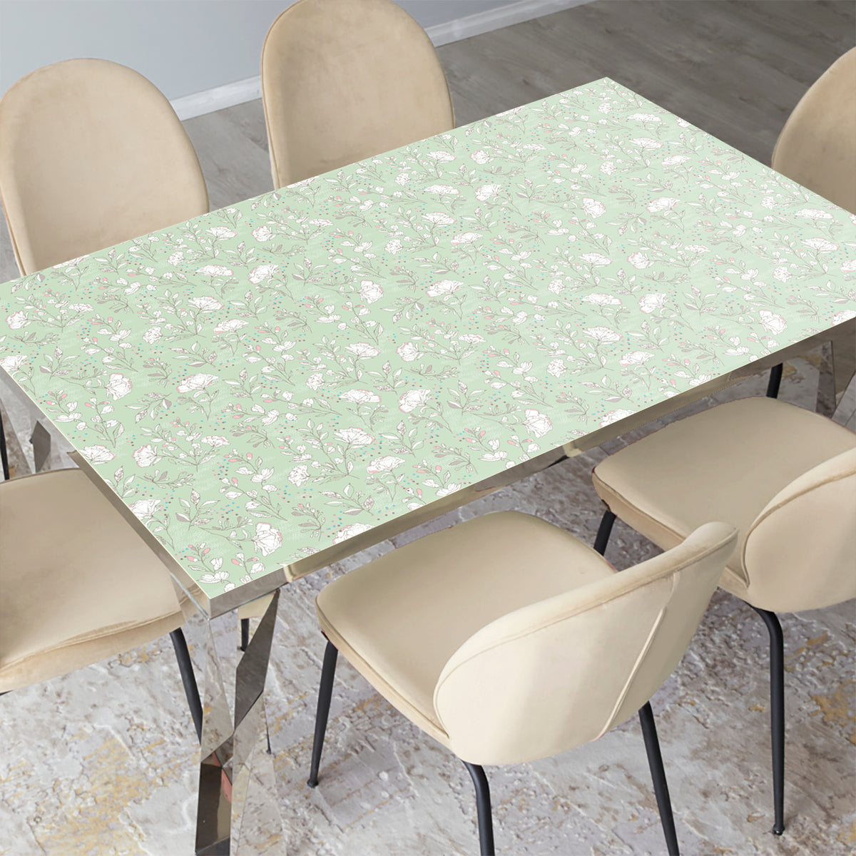 מפת שולחן pvc מלבנית פרחי פיוני - ירוק
