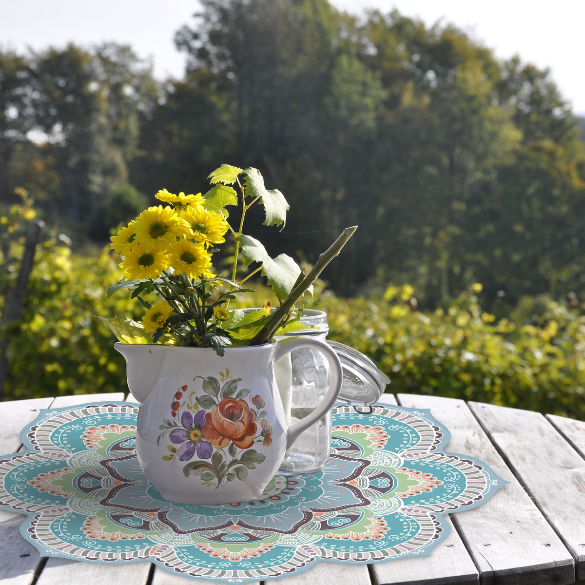 מפת פלייסמט מנדלה בגוונים פסטליים, הרמוניים, חתוכה צורנית