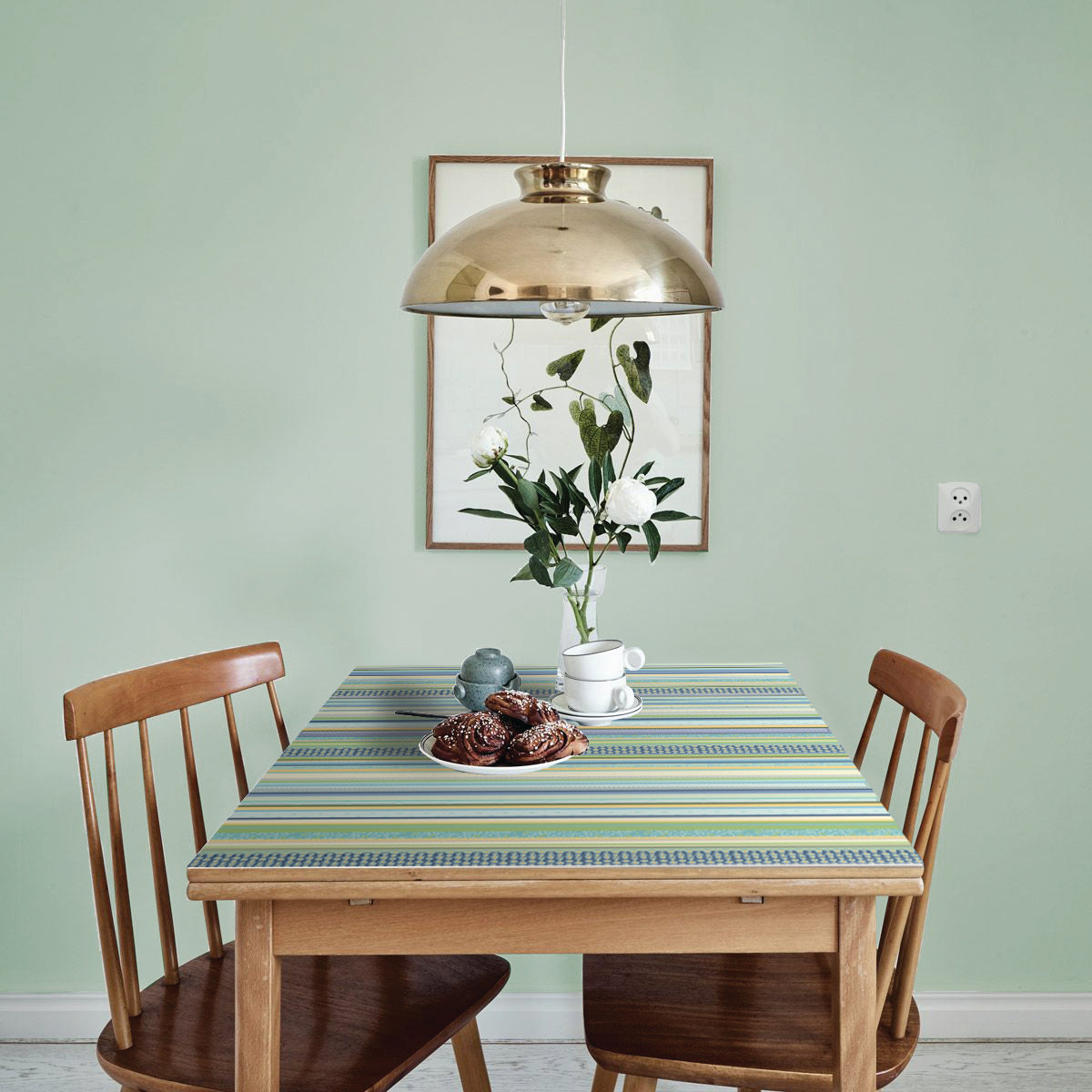 מפת פלייסמט מלבנית עם פסים וטקסטורות בגווני כחול, ירוק