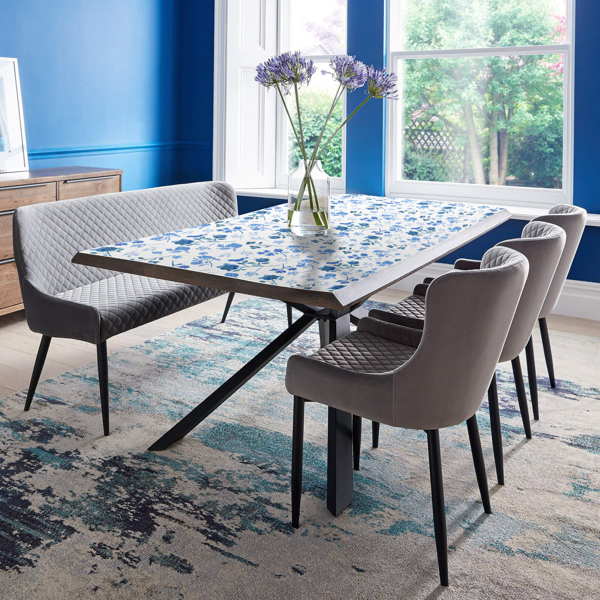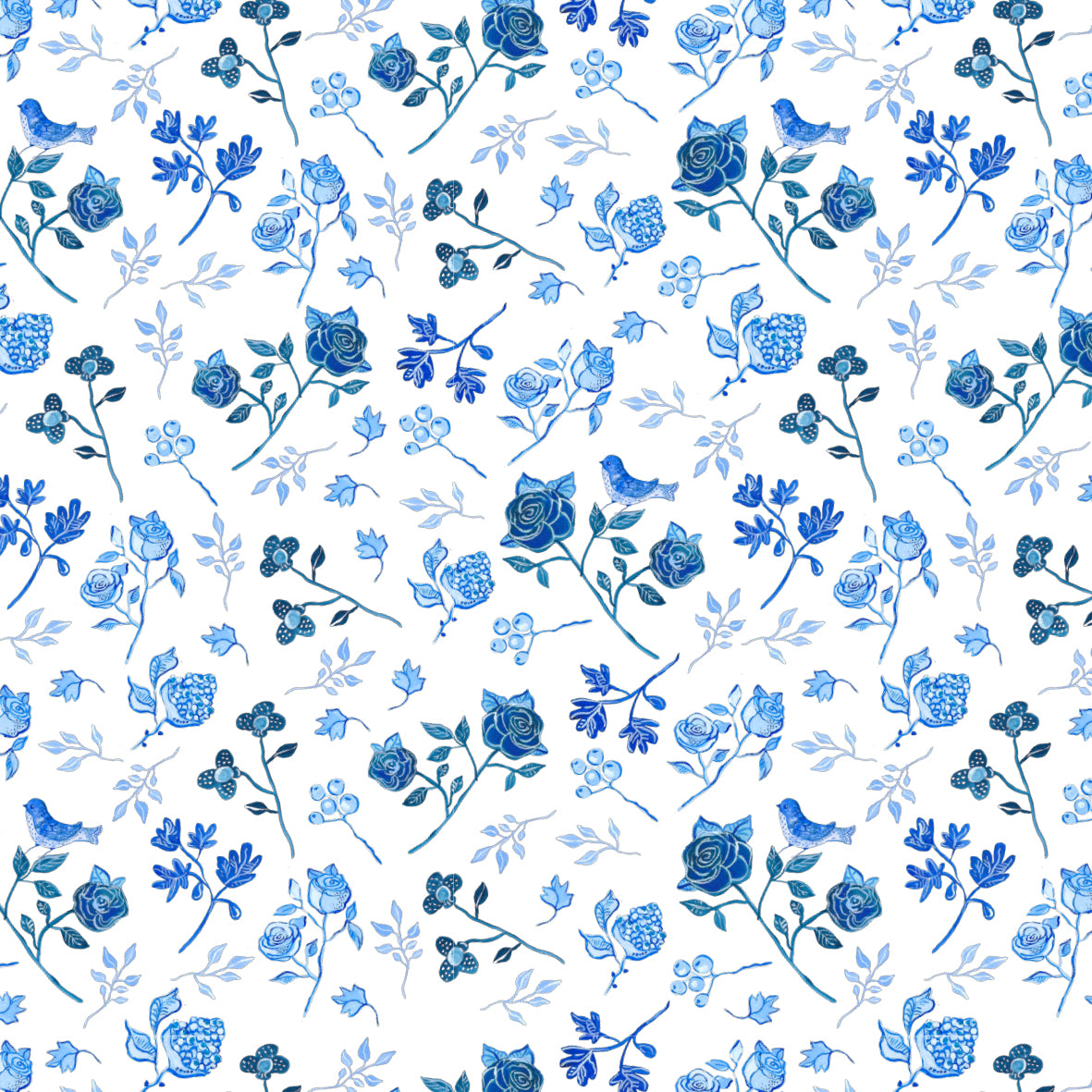 מפת פלייסמט מלבנית עם פרחים מאויירים בגווני כחול לבן