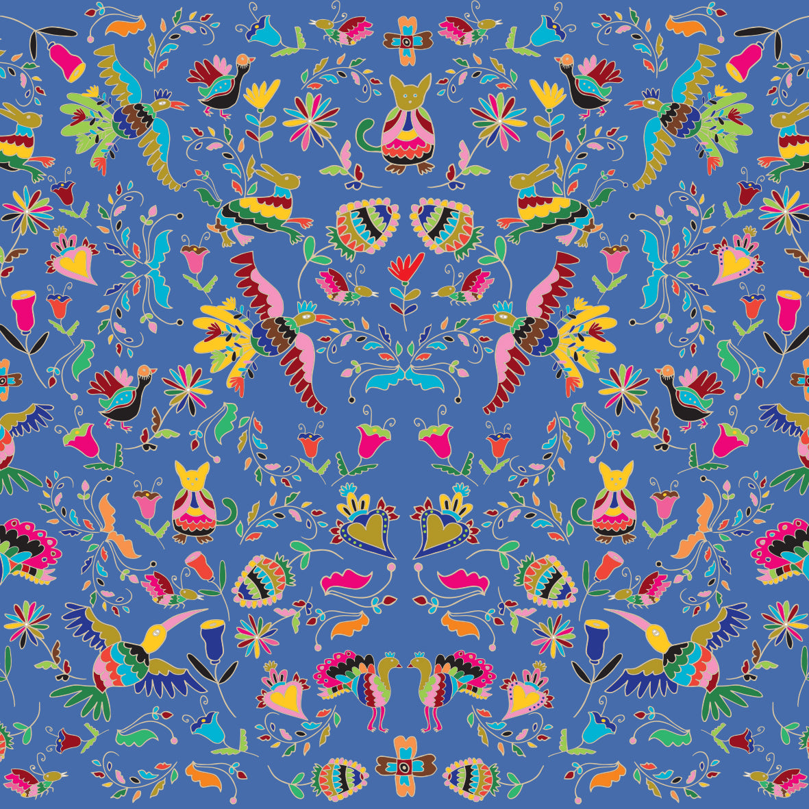מפת פלייסמט מלבנית צבעונית ושמחה עם איורים בסגנון רקמות מקסיקניות