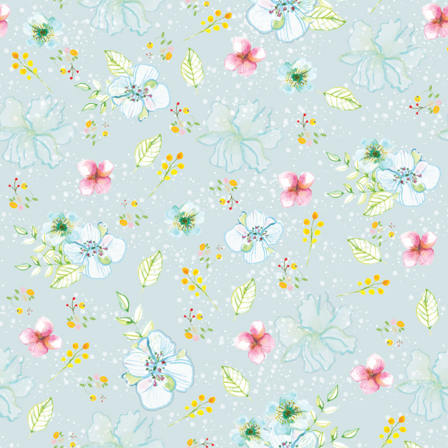 מפת שולחן pvc מלבנית Dreamy Flowers - תכלת אפרפר