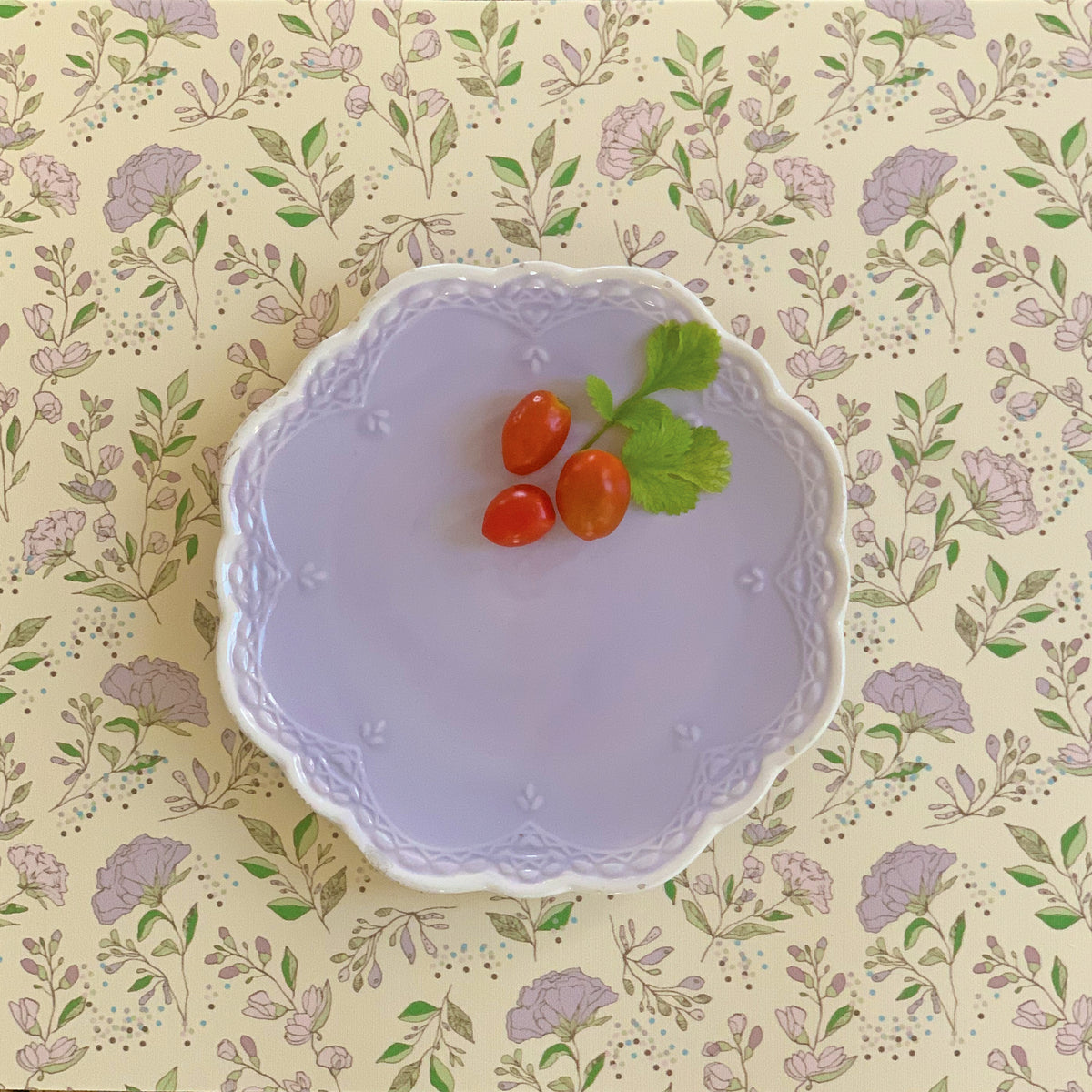 פלייסמט פרחי פיוני סגול לילך על רקע שמנת