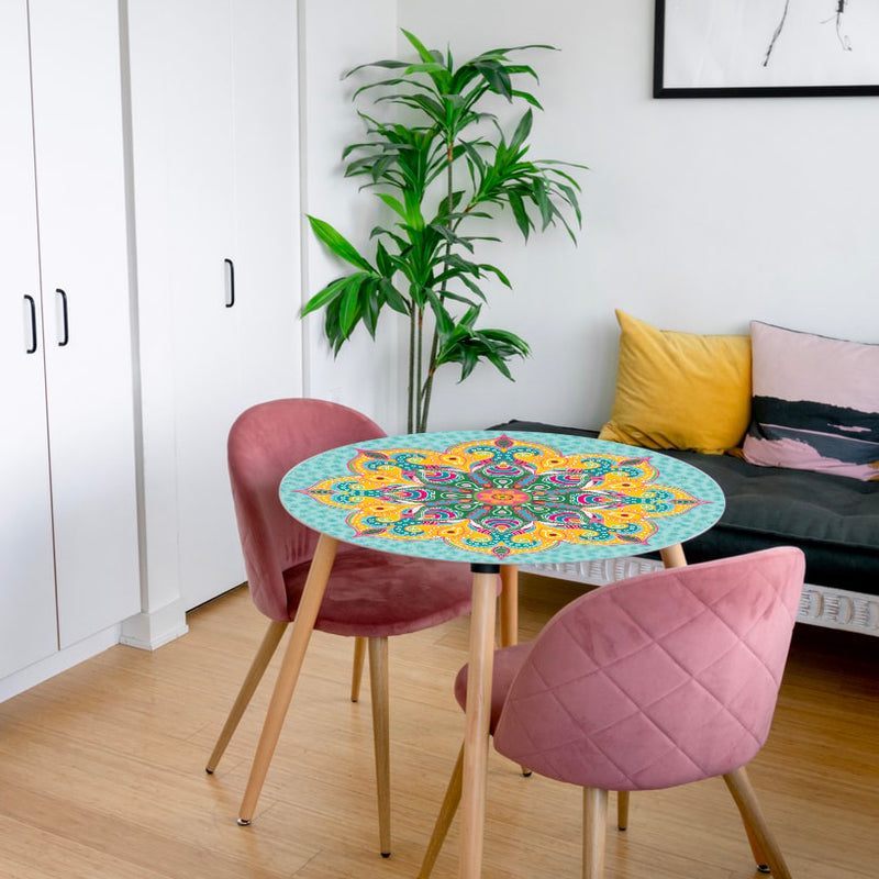 מפת שולחן pvc מנדלה עגולה- אפריקאית צהובה