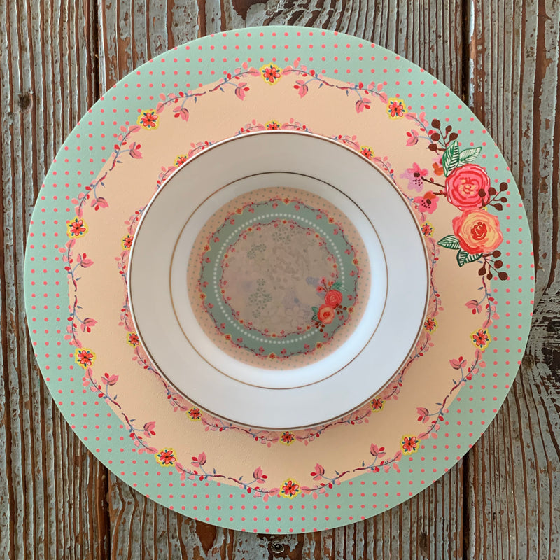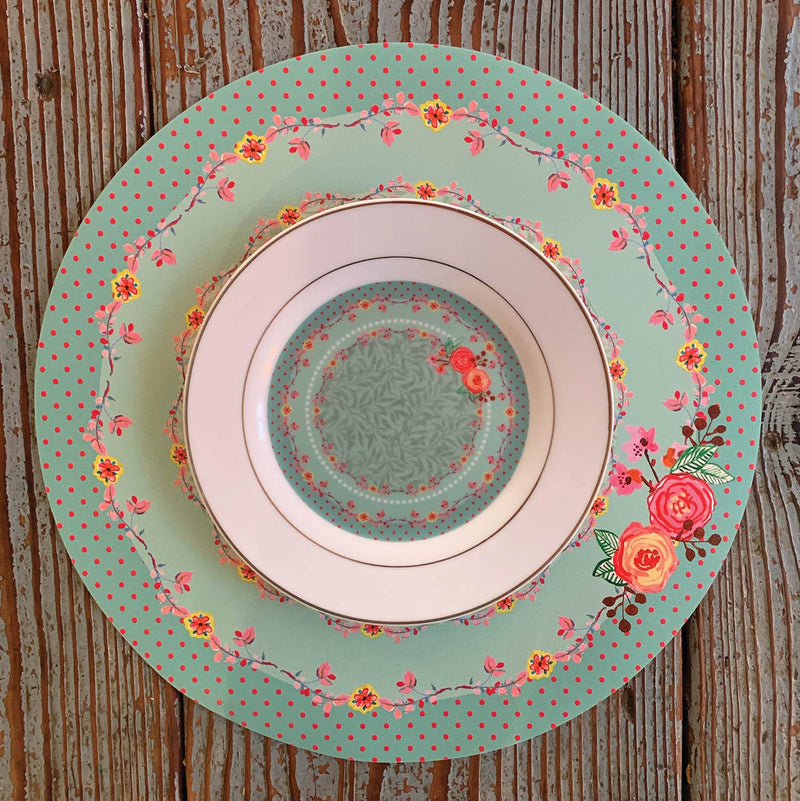 פלייסמט מעגל פרחים במבצע - טורקיז