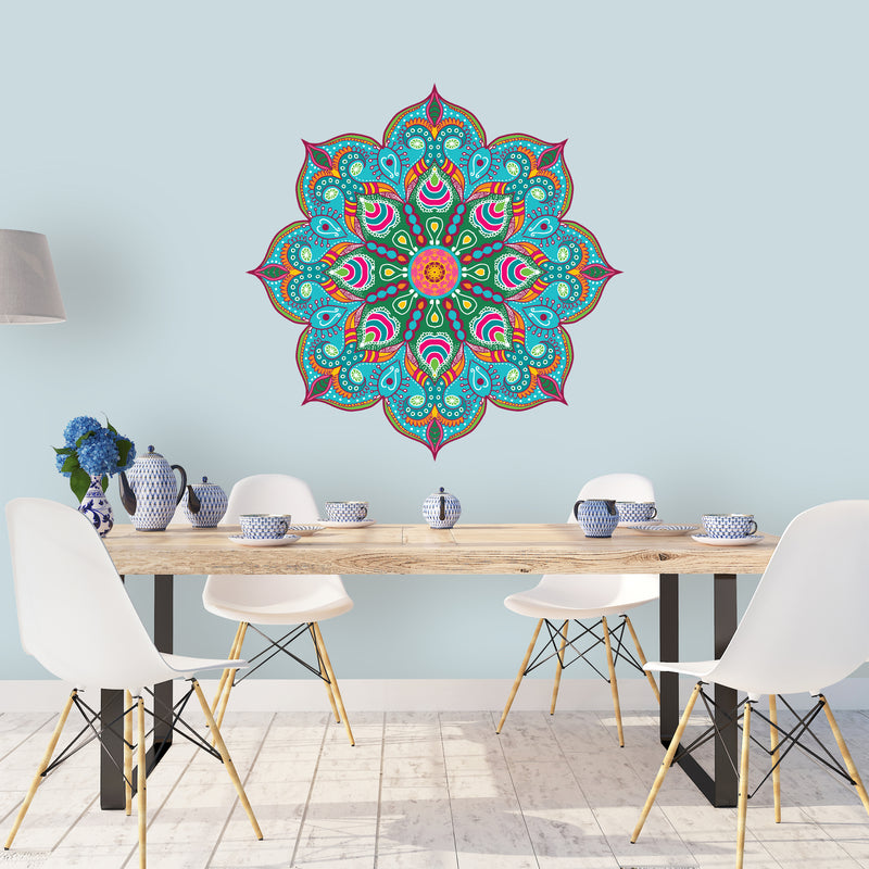 מדבקת קיר מנדלה גדולה במבצע גודל 146 ס״מ- אפריקאית טורקיז