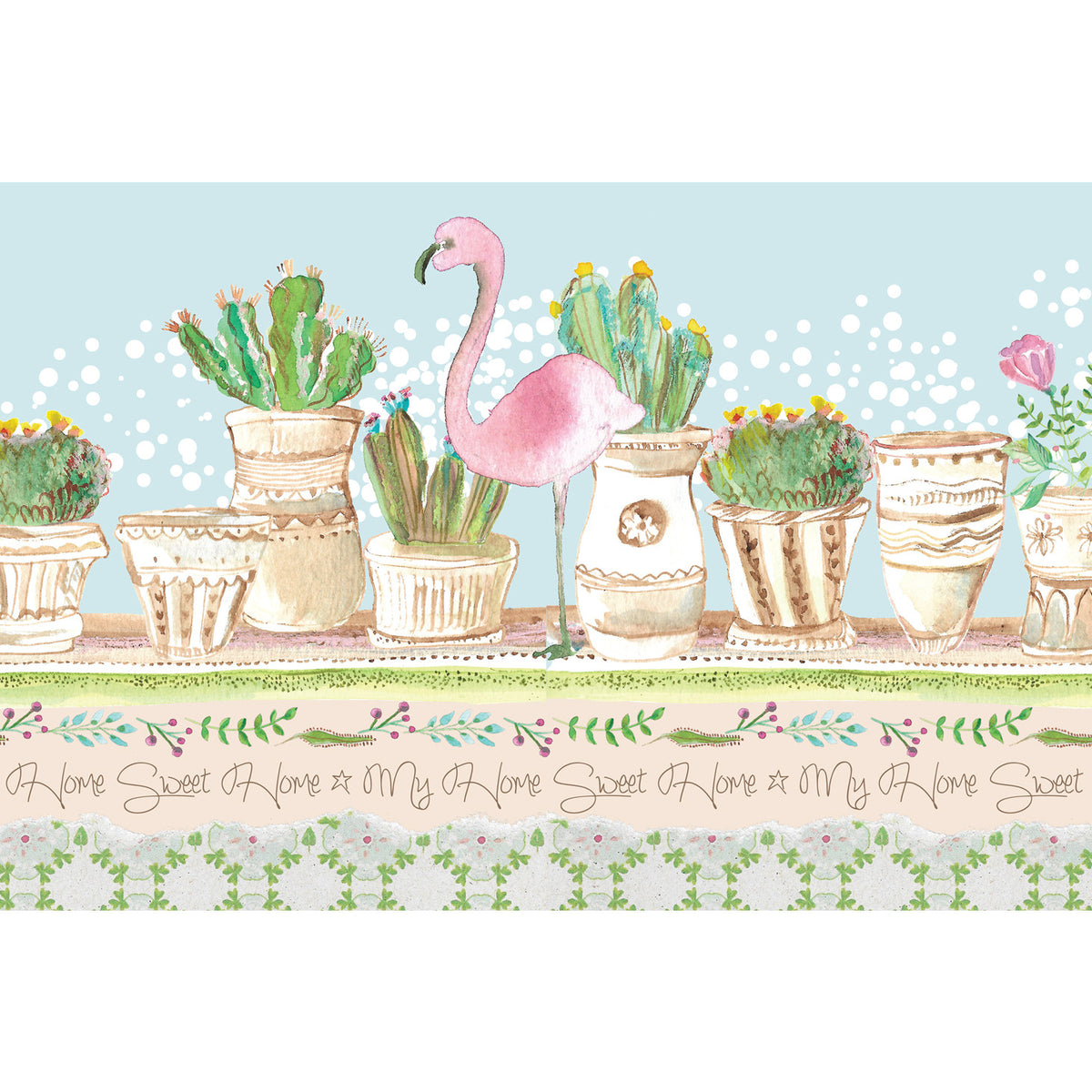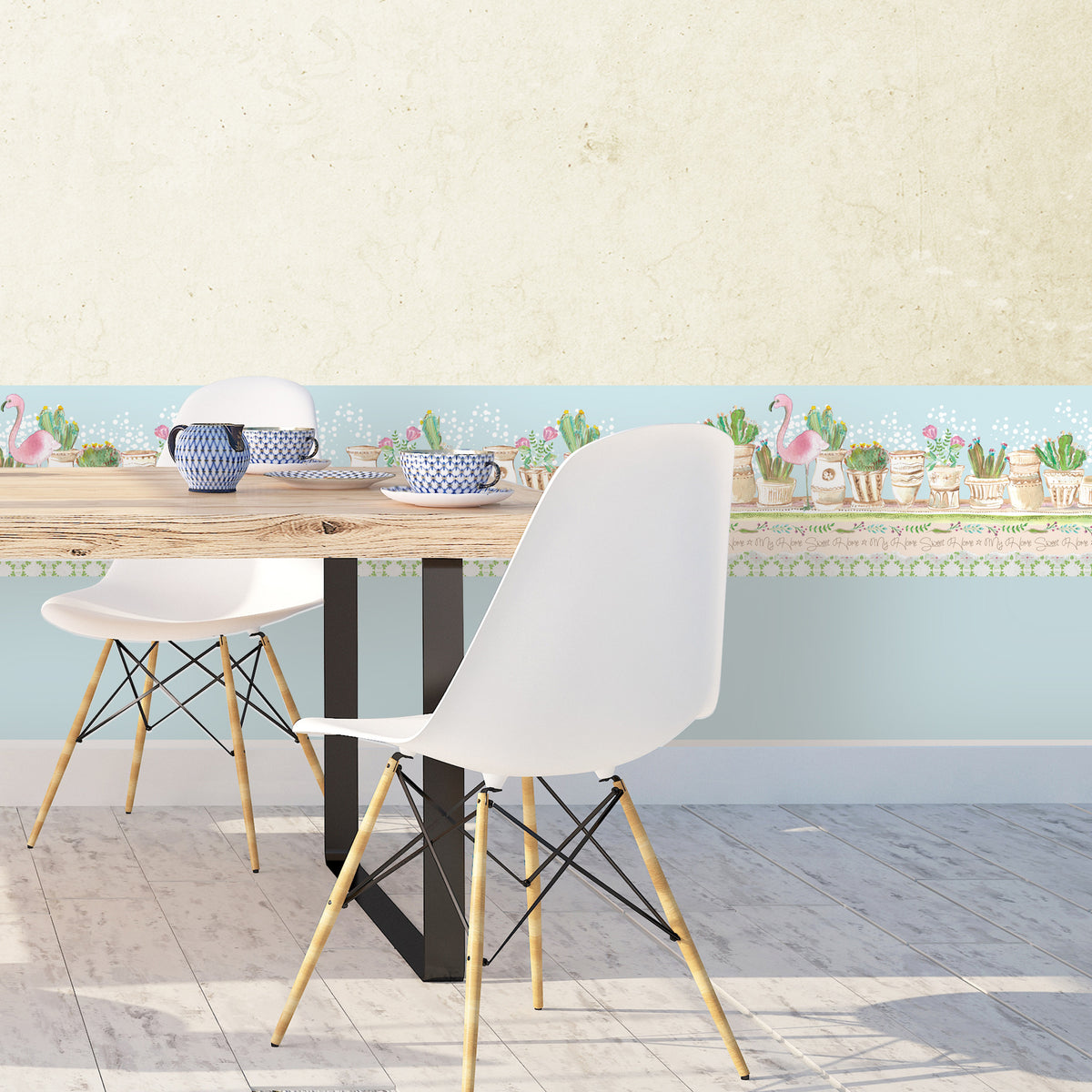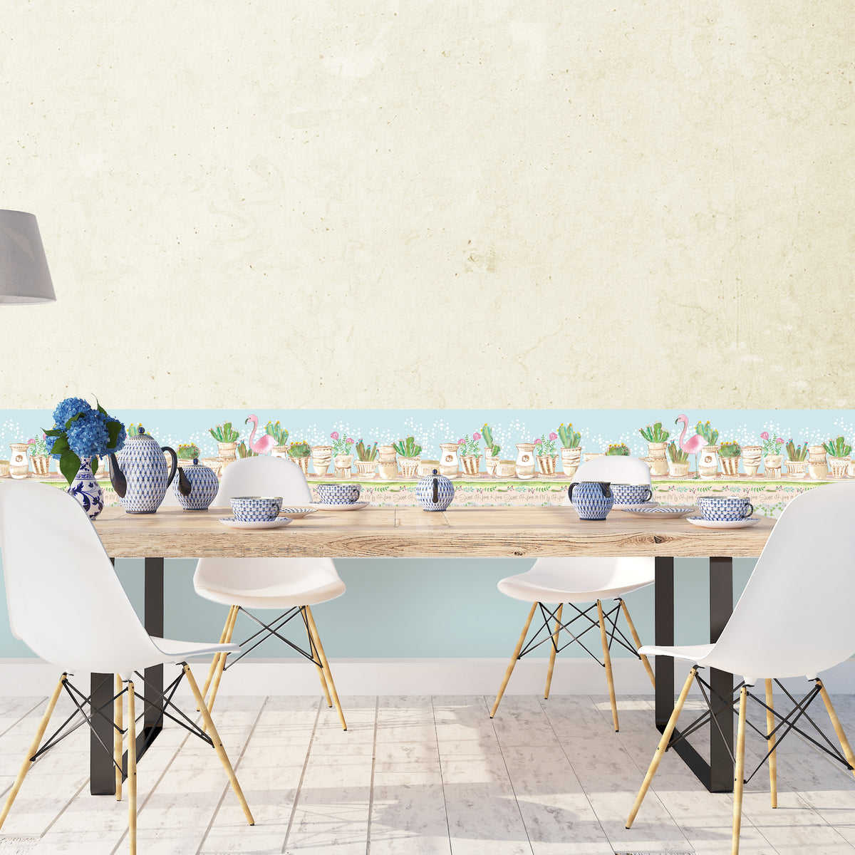 טפט בורדר לקיר עם איורי צבעי מים של עציצים וקקטוסים