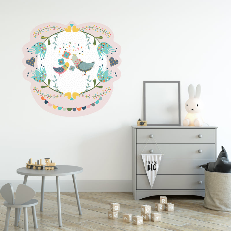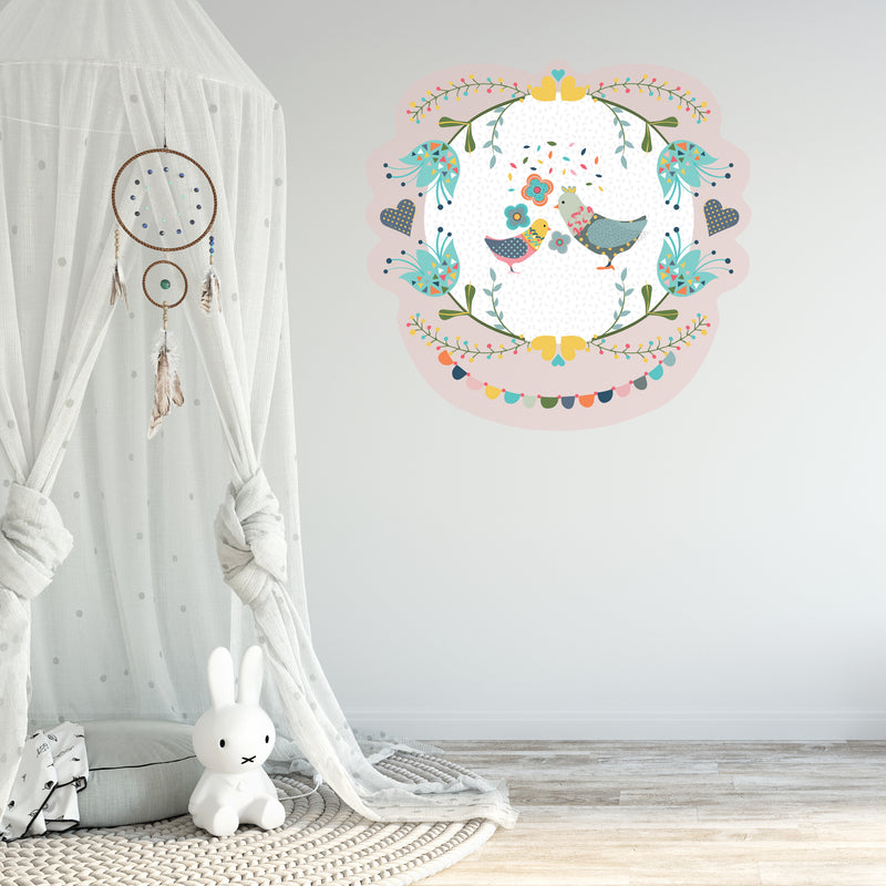 מדבקת קיר ציפורים סקנדינביות -ורוד