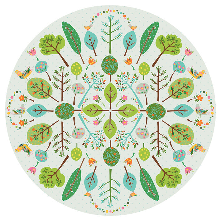 מנדלת קיר גדולה ומיוחדת במינה, עם איורי עצים, פרחים וציפורים