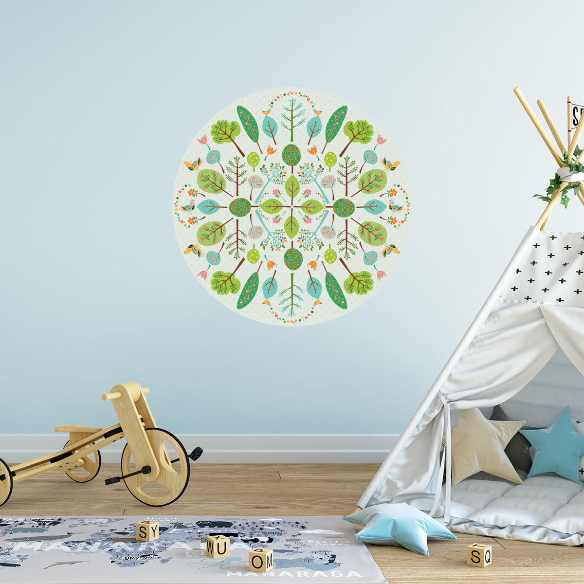 מדבקת קיר- מנדלת עצים רקע אפרפר