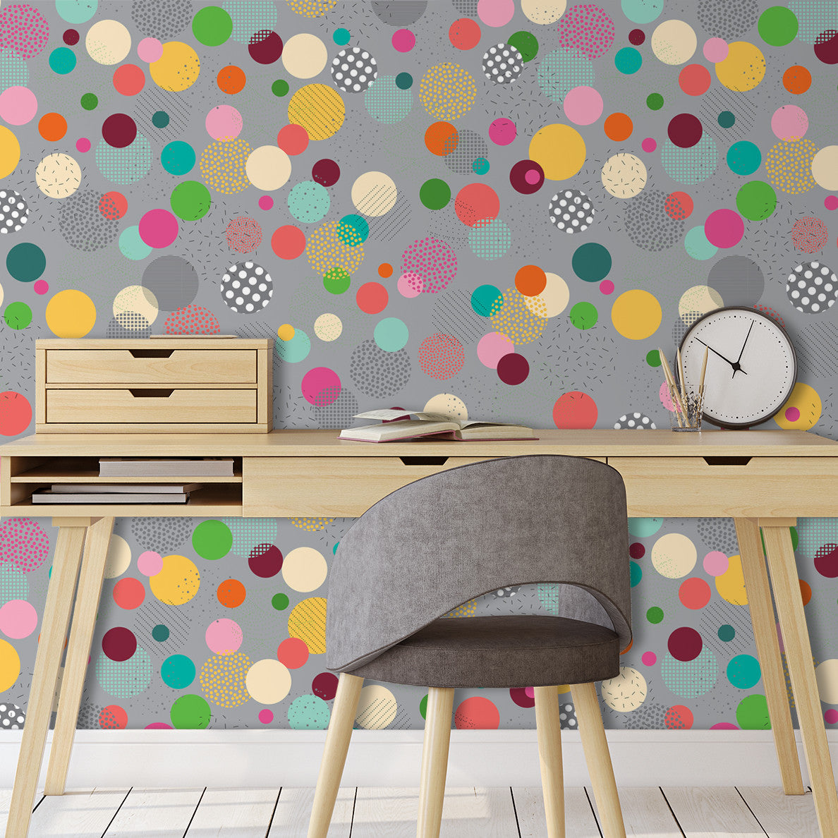 טפט קיר איכותי עם עיגולים ובועות צבעוניות ושמחות