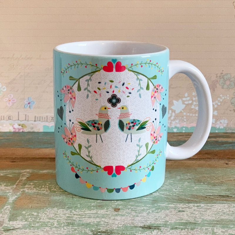 ספל קרמיקה מצוייר- ציפורים סקנדינביות טורקיז