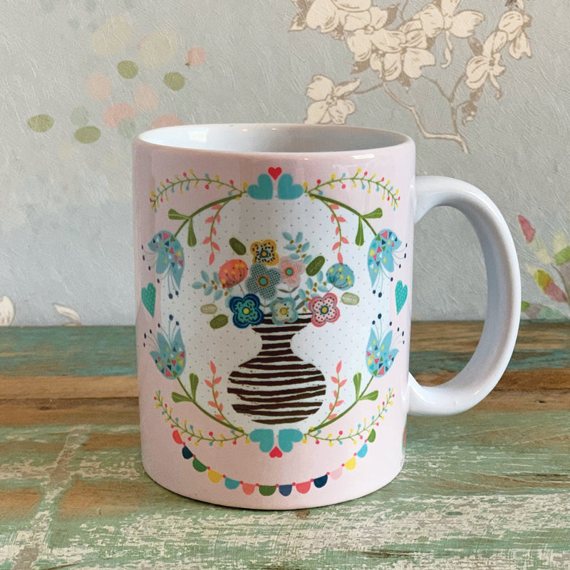 ספל קרמיקה מצוייר- פרחים סקנדינבים