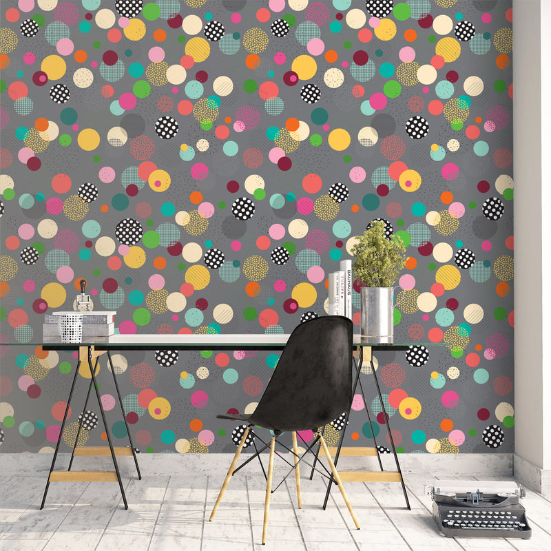טפט קיר דוגמת עלים גאומטרים- אפור