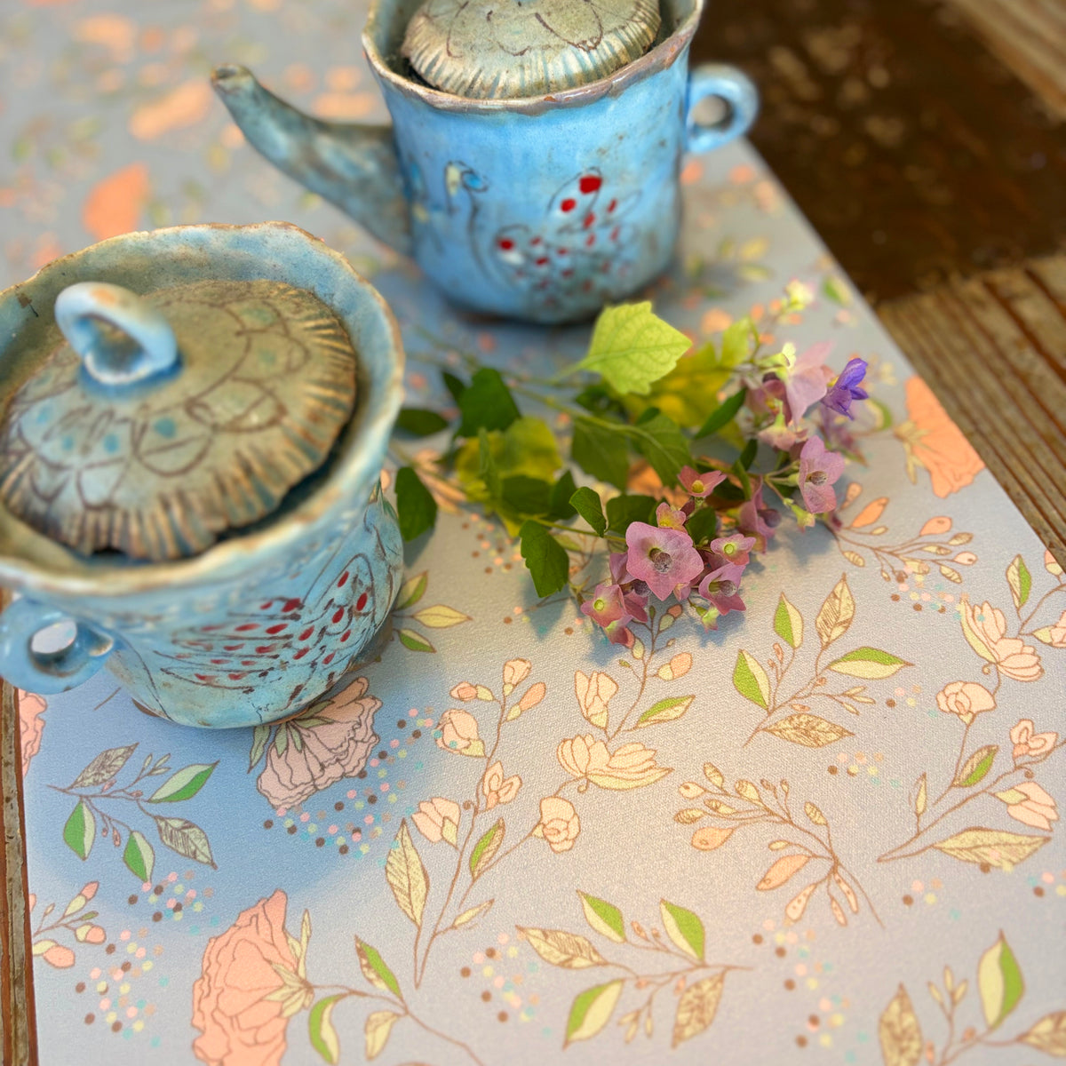 ראנר פיויסי שולחני- פרחי פיוני תכלת
