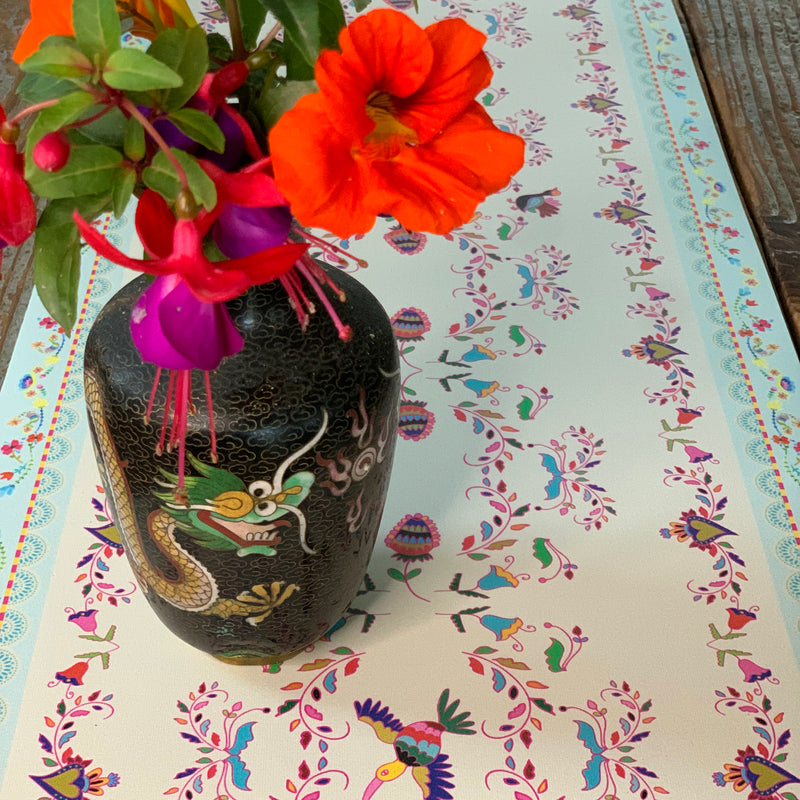 ראנר פיויסי שולחני- ציפורים יפני, רקע ירוק מנטה