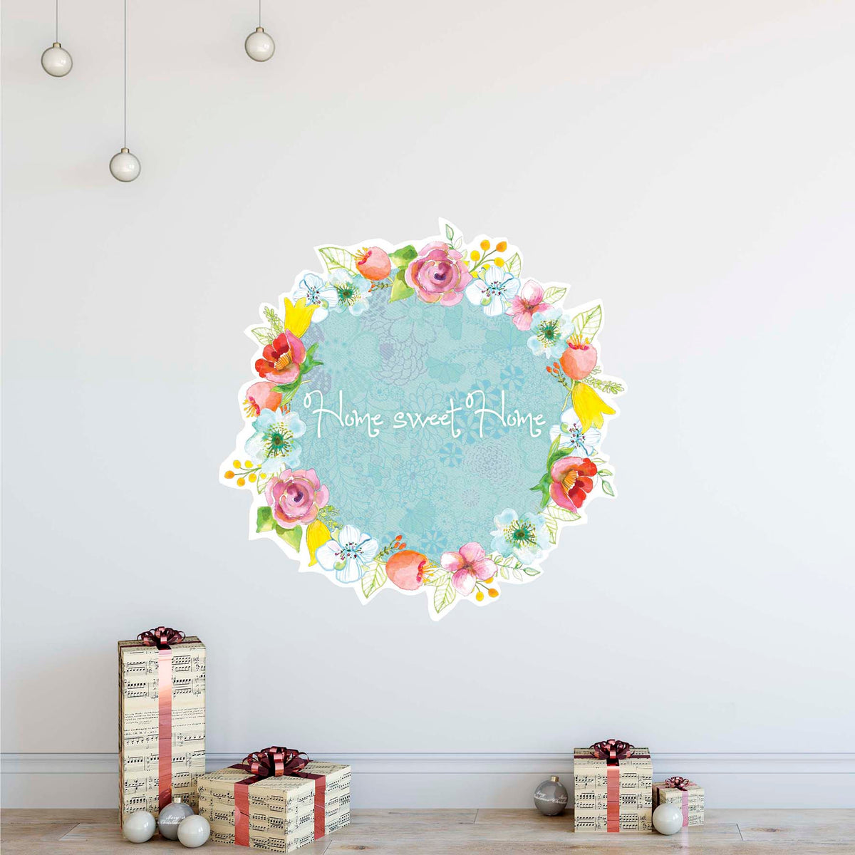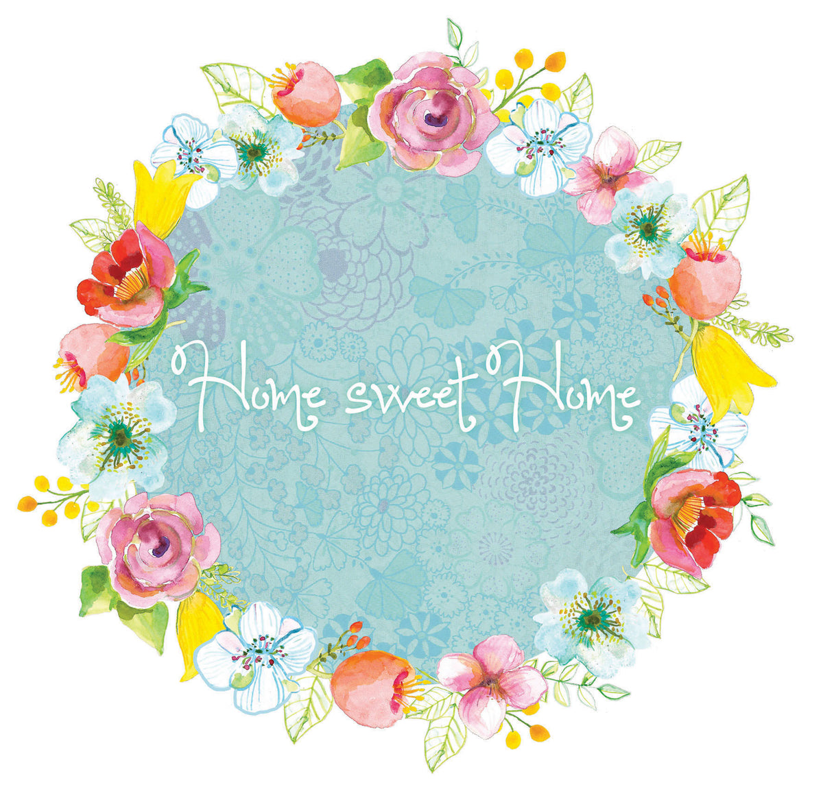 Home Sweet Home- מדבקת זר פרחים מאויירים עם כיתוב
