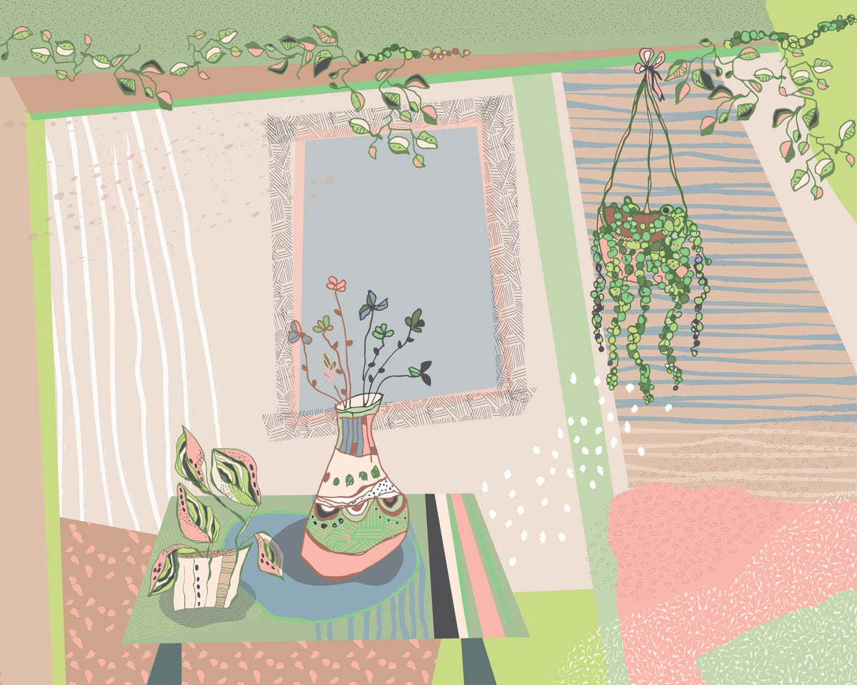 טפט קיר פינה בירוק - פרחים בחלון