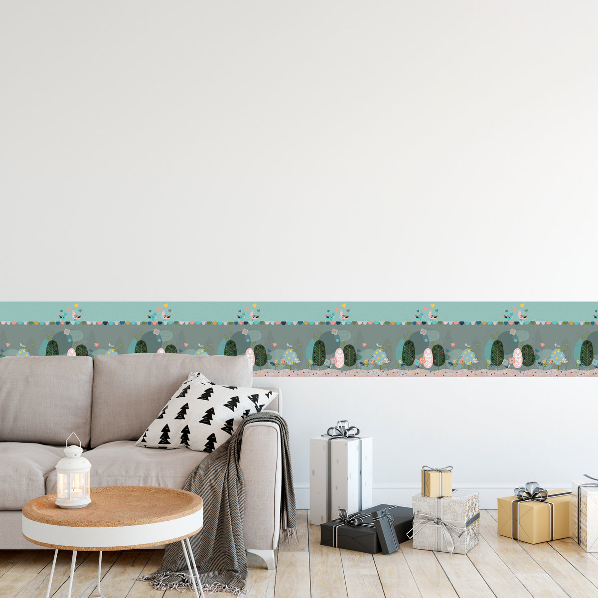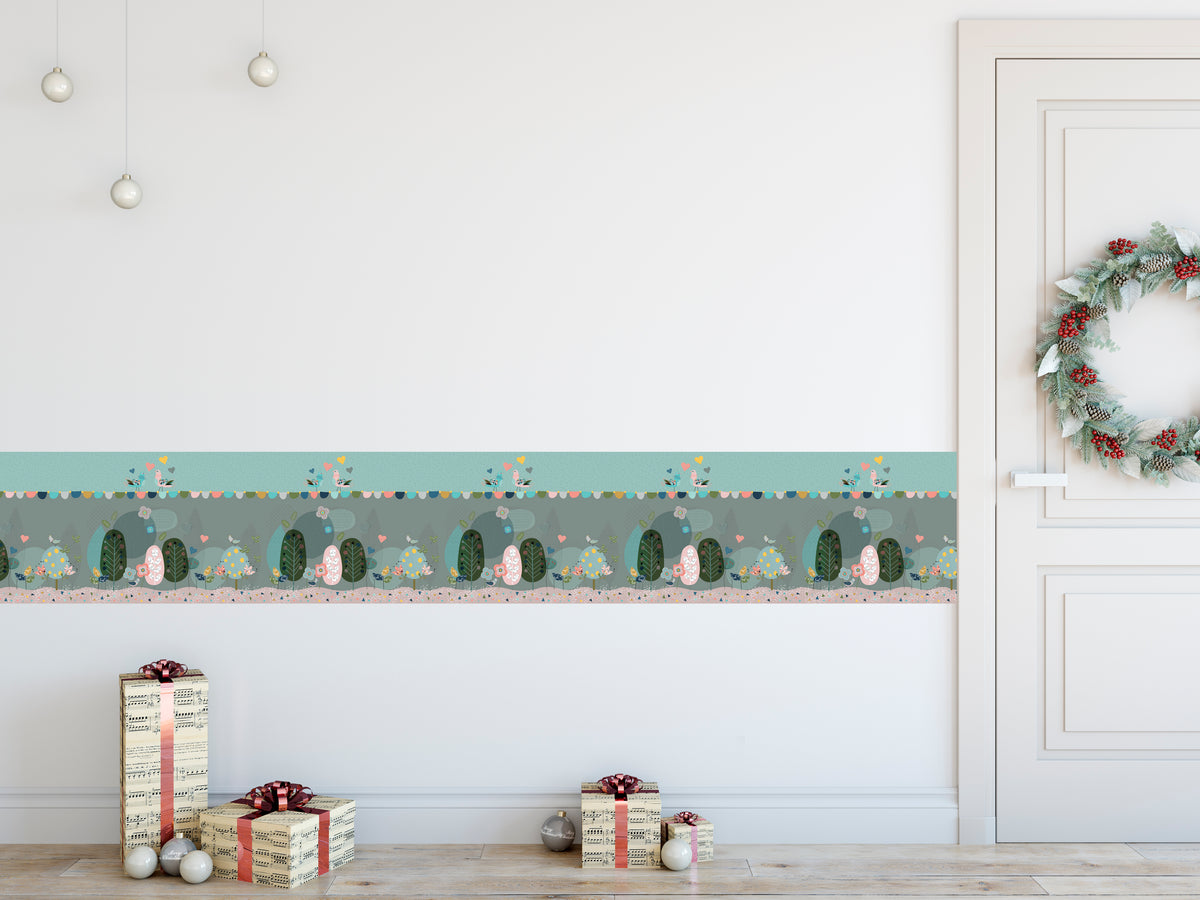 טפט בורדר לקיר מקסים עם ציורי עצים