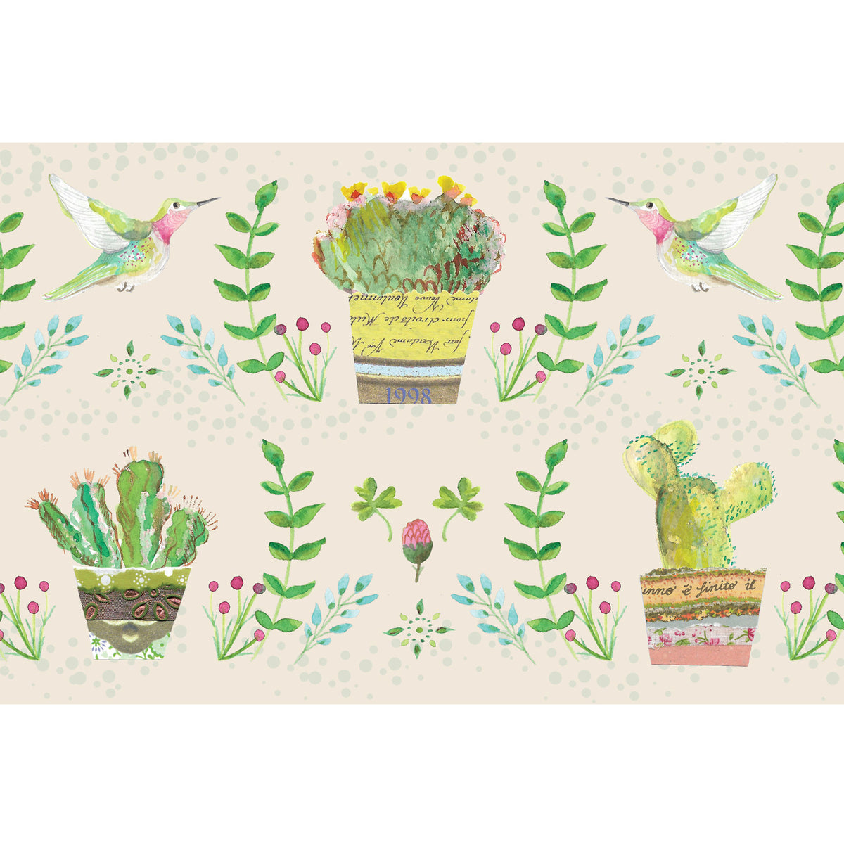 טפט בורדר לקיר מיוחד במינו עם איורי עציצים בטכניקת קולאז׳