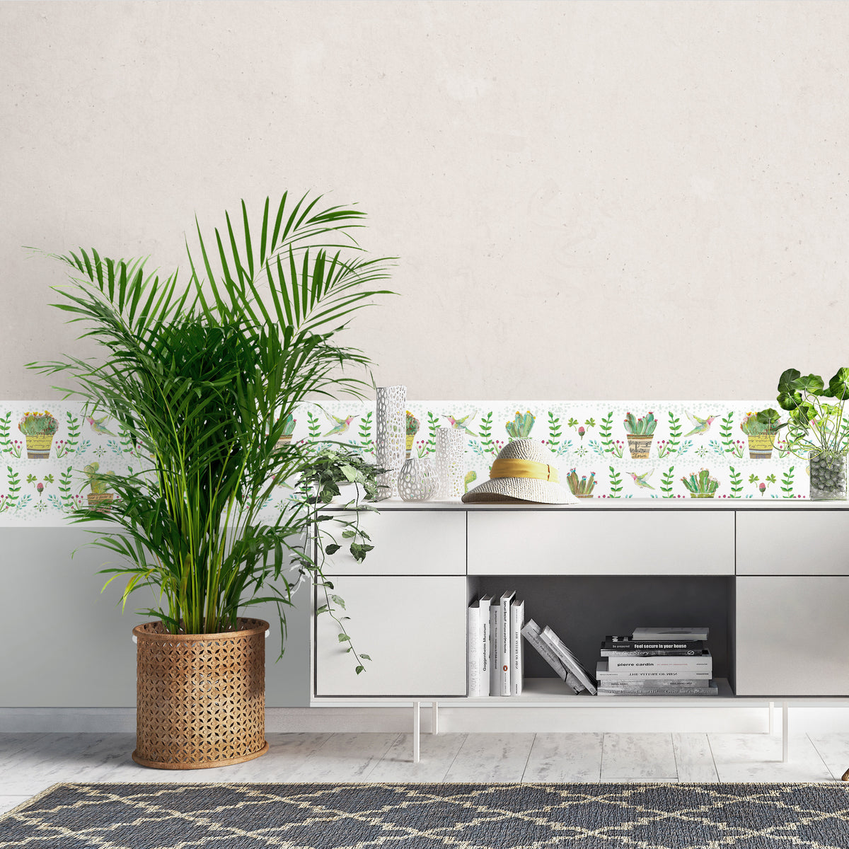 טפט בורדר לקיר מיוחד במינו עם איור קולאז של עציצים