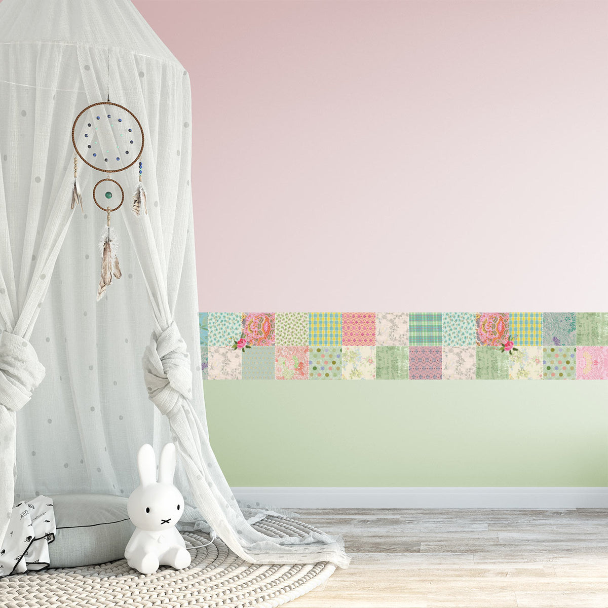 טפט בורדר לקיר עם דוגמת טלאים צבעונית